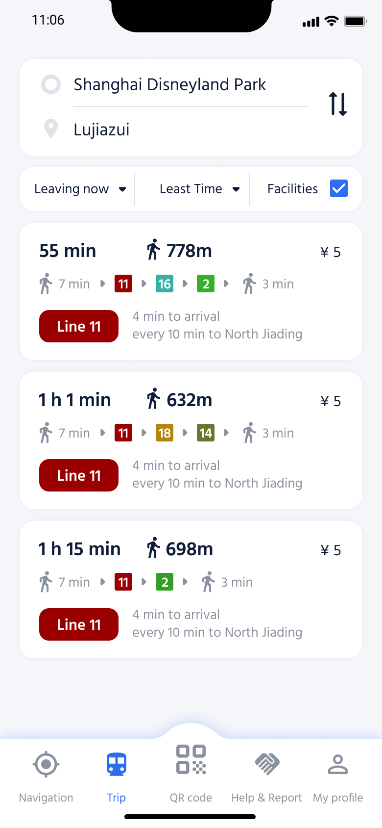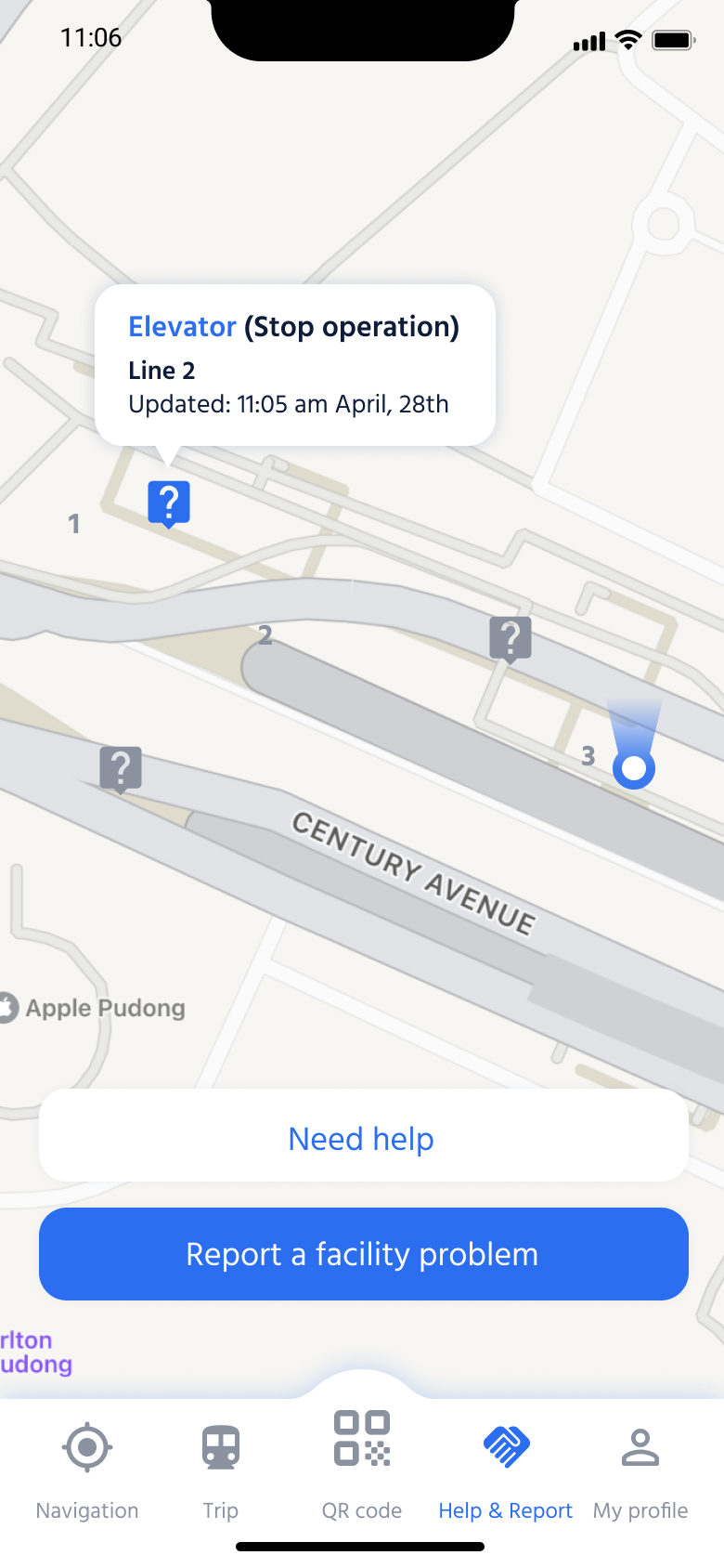 to search for realtime information about subways and facilities, to plan or start a trip, to report problems or seek help, and to receive pop-up windows for checking facilities status or asking for help, and using the QR code is indispensable.