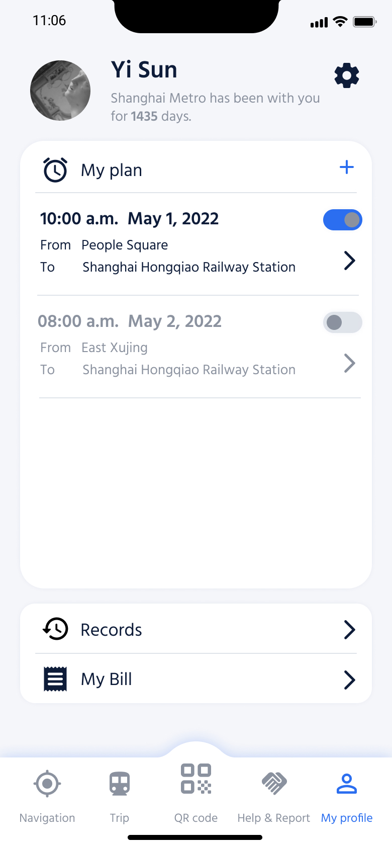 QR Code is the home screen of this app, which is the function used most frequently by everyone. Users can start the app and scan the QR code to enter the station.