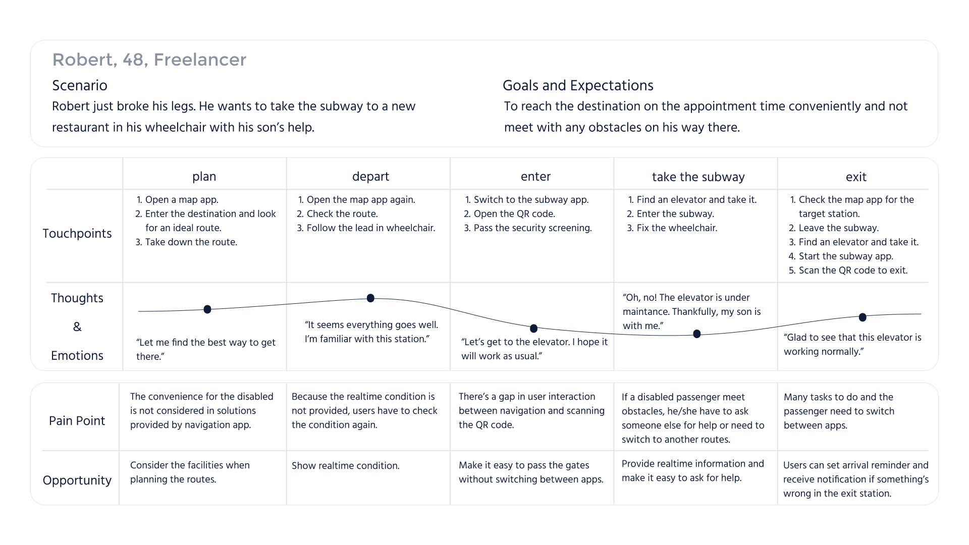 Passengers may have different limitations in abilitiy, and encouter various difficulties. The main problem is how to summarize the complex needs of users and find a universal solution.