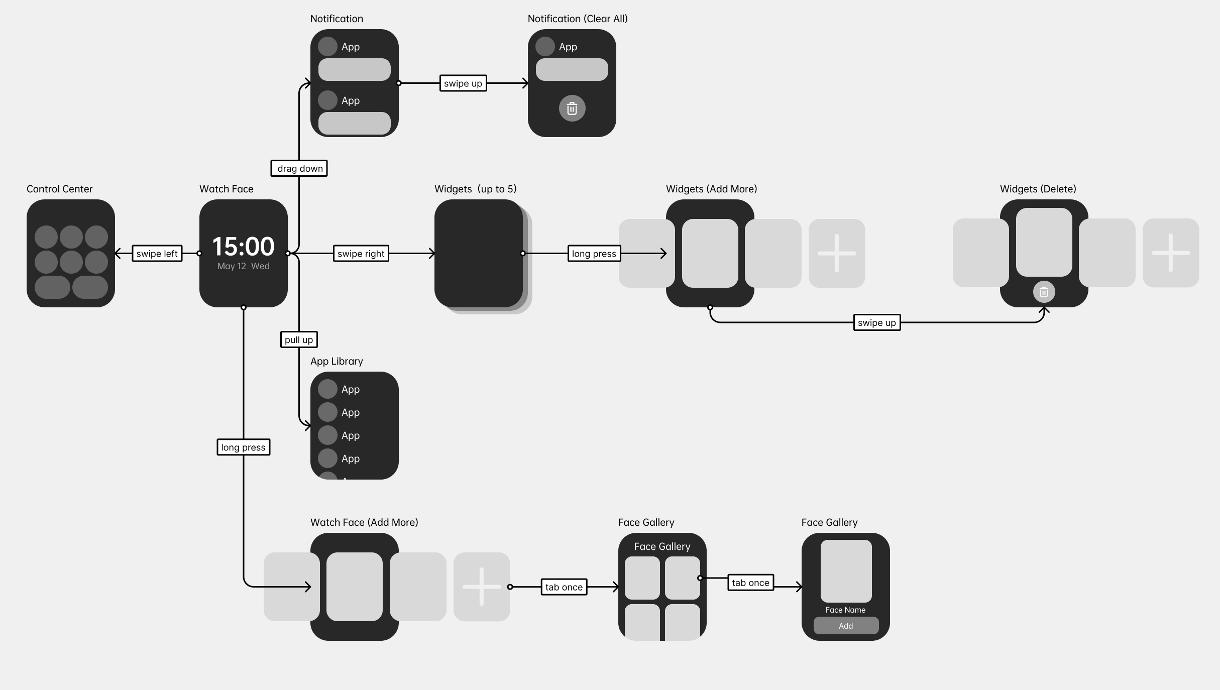 More customizable watch faces* should be designed and developed to provide users with shortcuts for interaction.